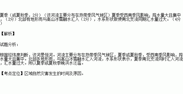 说明该河流易发生洪水泛滥的季节及自然原因。
