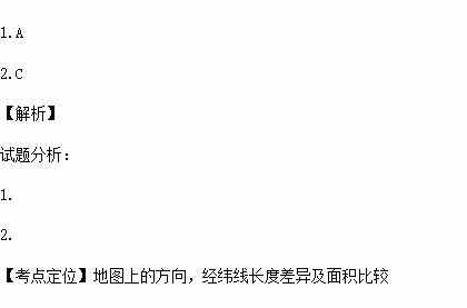 1.图中①~④四地位于北京(116°E,40°N)东南方向的是( )
