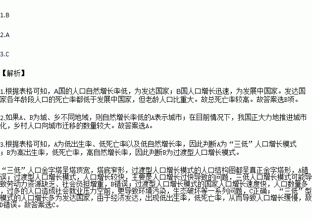 1.如果A、B分别表示经济水平不同的两个国家,则表中A国人口的死亡率高于B国的原因