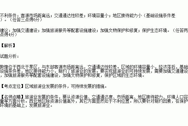 指出制约敦皇旅游资源进一步开发的不利条件,并为敦皇旅游业的可持续发展提出合理化建议。