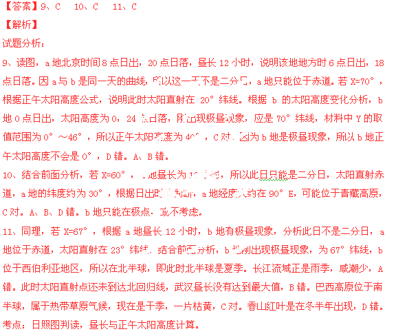 ÏÂͼΪaºÍbÁ½µØÍ¬Ò»ÈÕÆÚÌ«Ñô¸ß¶ÈÈձ仯ʾÒ⣬X¡¢Y·Ö±ðΪÁ½µØ×î´óÌ«Ñô¸ß¶È£¬ÇÒYµÄȡֵ·¶Î§Îª0¡ã¡«46¡ã£¬¾Ý´Ë»Ø´ð9¡«11СÌâ¡£