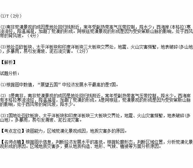 (2)S、A两国均有大面积荒漠景观,分别说明两国荒漠景观成因的差异。