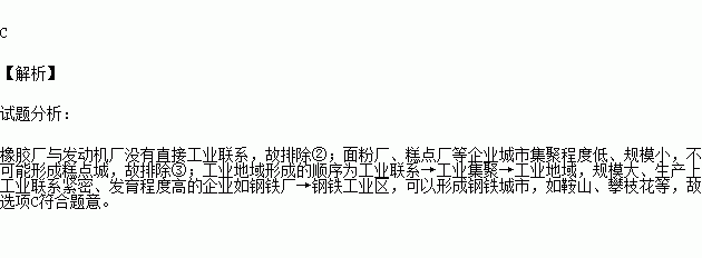 ②工业城市形成:橡胶厂→发动机厂→汽车制造厂