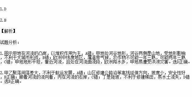 C.丙渡口建在河流的左岸 D.丁地修梯田发展种植业