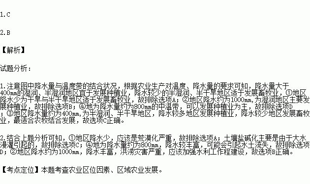1.立足于农业可持续发展,最适合农牧结合发展的地区是( )