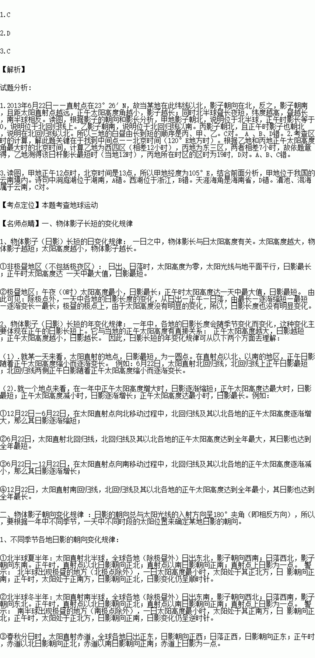 1.¼×¡¢ÒÒ¡¢±ûÈýµØ¸ÃÈÕÖ糤,Óɳ¤µ½¶ÌµÄ˳ÐòÊÇ