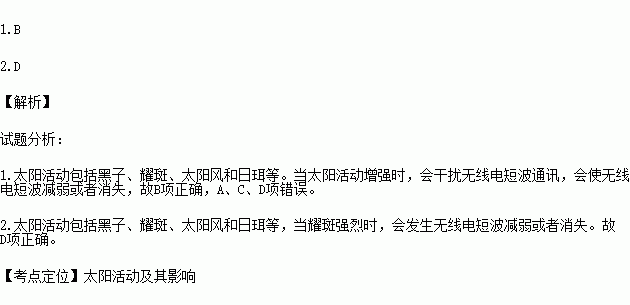 1.当太阳活动强烈时,图中的C电波可能会( )