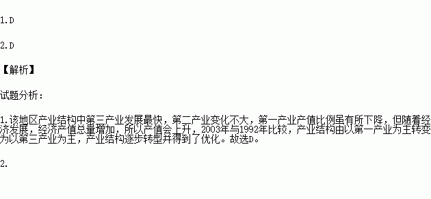 读某地区三次产业产值和就业结构变化图,回答下列问题。