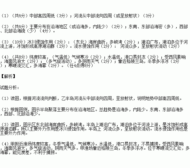 (1)据图推断乙半岛的地势特征并说明依据(6分)。