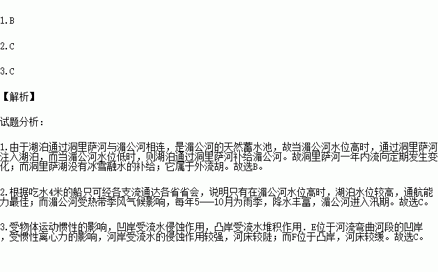 1.关于洞里萨湖和洞里萨河的叙述正确的是