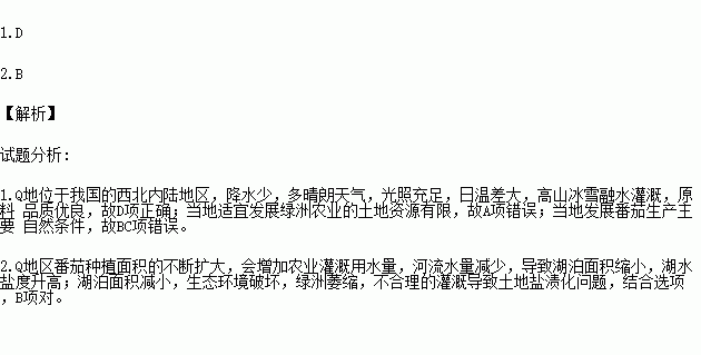 ÏÂͼËùʾQµØÇøÊÇÎÒ¹úij´óÐÍ»ìºÏÐÍÒûÁÏÆóÒµµÄ·¬ÇÑÔÁÏÖ÷²úµØ¡£¾Ý´ËÍê³ÉÏÂÁи÷Ìâ¡£