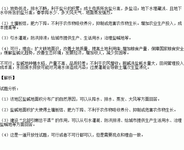 £¨1£©ËµÃ÷¸ÃµØÇøÑÎ¼îµØÃæ»ý·Ö²¼¹ãµÄ×ÔÈ»ÔÒò¡£