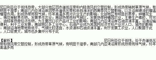 据图,综合分析自然地理要素对尼日利亚气候特征形成的影响、对尼日利亚人文地理环境的影响。