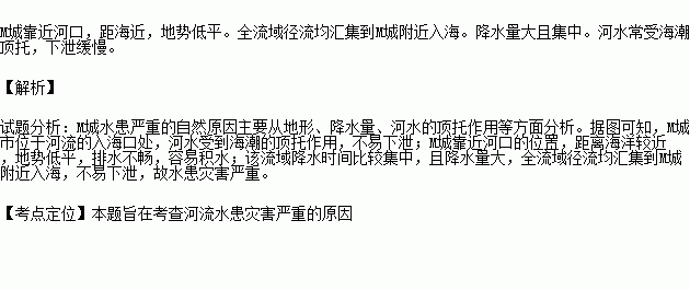分析M城水患严重的自然原因。
