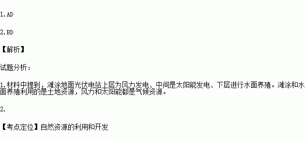 位于盐城东台沿海的全国最大“风光渔”一体化发电站,是全球单体最大的滩涂地面光伏电站,最上层为风力发电、中间是太阳能发电、最下层进行水面养殖,实现立体综合开发利用,可谓“一种资源,三种产业”。据此完成下列问题。