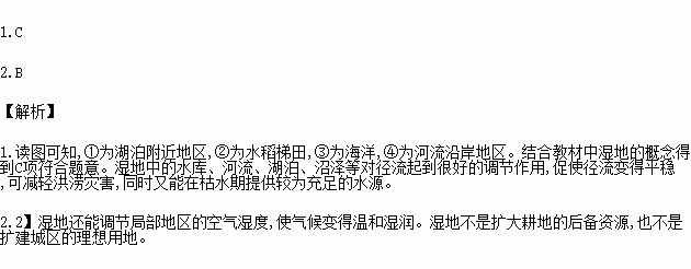每年的2月2日为“世界湿地日”。湿地主要是指沼泽、泥炭地、河流、湖泊、海岸带以及人工水田、水库等。读图,完成各题。