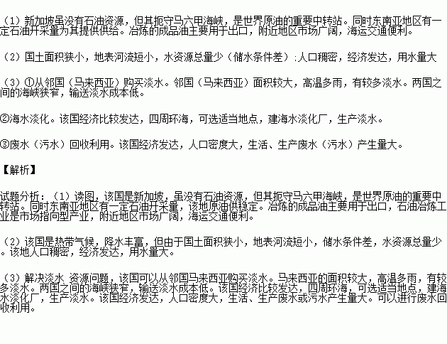 (1)该国没有石油资源,却成为世界第三大石油冶炼中心,试分析原因。