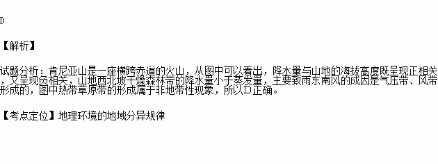 肯尼亚山是一座横跨赤道的火山,下图为其垂直自然带示意图,图中( )