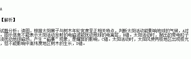 D.太阳活动时,太阳风使两极地区出现极光,从而影响中高纬度地区树木的生长