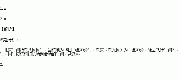 1.某记者欲从日本东京(采用135°E时间)乘飞机(飞行时间2小时)赶往北京全程报道该记者见面会,仅从时间和经济两个方面考虑,其乘坐的飞机宜在当地什么时间起飞?( )
