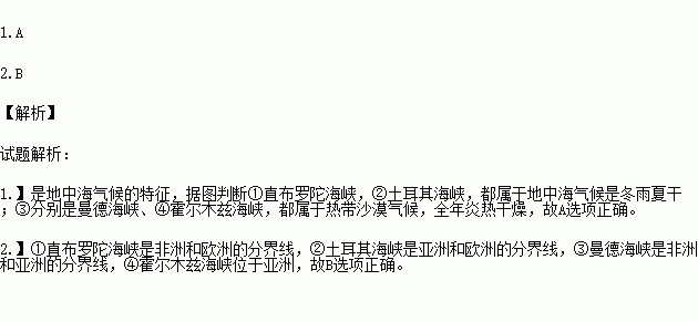1.图中海峡沿岸气候具有冬雨夏干特点的是( )