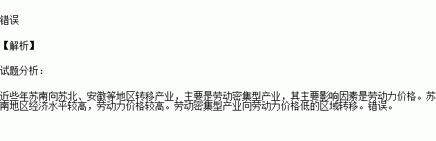 近些年苏南向苏北、安徽等地区转移产业,其主要影响因素是国家的宏观调控政策。( )