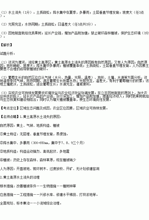 (2)分析咸阳乾县和礼泉地区种植葡萄有利的自然条件。(3分)