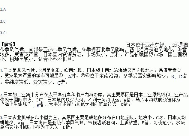 1.2014Äê2Ô£¬ÈÕ±¾²¿·ÖµØÇøÔâÊÜÁ˺±¼ûµÄÑ©ÔÖ£¬ÊÜÔÖ×îΪÑÏÖØµÄ³ÇÊпÉÄÜÊÇ£¨ £©