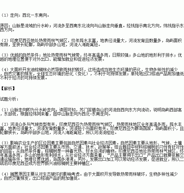 (1)指出苏门答腊岛山脉的走向并说明判断理由。