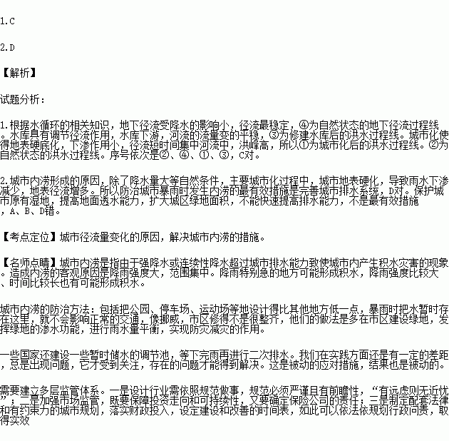 1.ͼÖÐËÄÌõÇúÏߣº×ÔȻ״̬µÄºéË®¹ý³ÌÏß¡¢×ÔȻ״̬µÄµØÏ¾¶Á÷¹ý³ÌÏß¡¢³ÇÊл¯ºóµÄºéË®¹ý³ÌÏß¡¢ÐÞ½¨Ë®¿âºóµÄºéË®¹ý³ÌÏߣ¬ÒÀ´Î¶ÔÓ¦µÄÐòºÅ·Ö±ðÊÇ