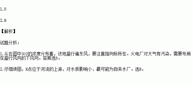 1.根据上面右图信息,甲城市火力发电站适合选择在①一④中的