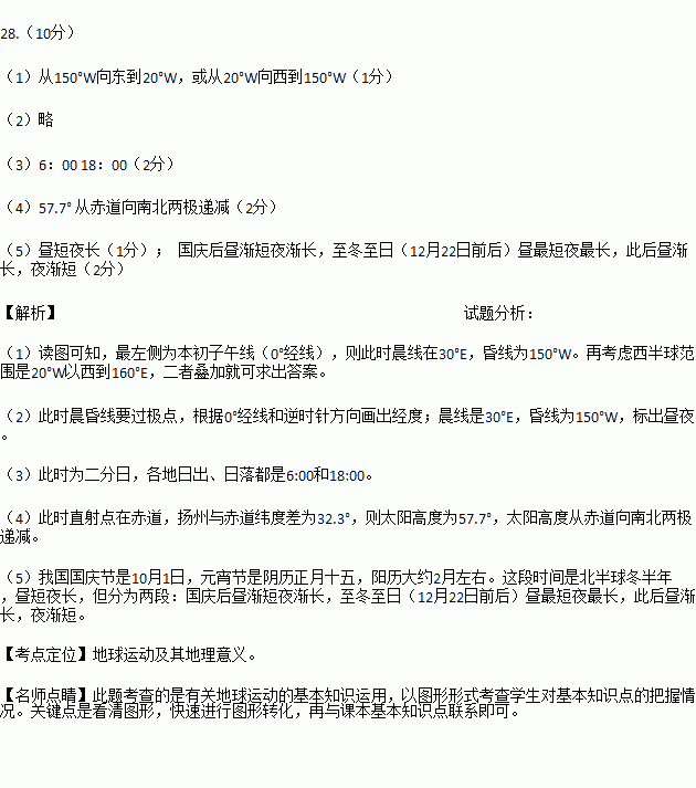 ¶ÁÏÂͼ»Ø´ðÏÂÁÐÎÊÌ⣨ͼÖÐÒõÓ°²¿·Ö±íʾºÚÒ¹£©¡££¨10·Ö£©