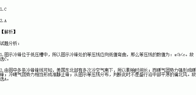 1.图中等压线a、b、c的数值大小关系是