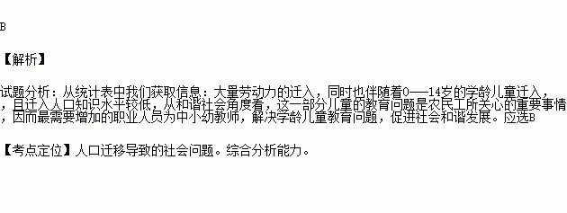 下表为2002-2007年我国某特大城市郊区年平均人口迁移统计资料,迁入人口以初中学历的外来人口为主。读表完成下题。