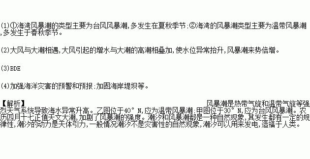 (1)简析图中①②两海湾风暴潮的主要类型及风暴潮多发季节的不同。