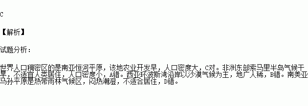 C.南亚恒河平原 D.南美亚马孙平原