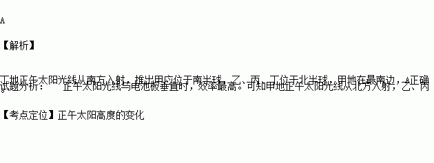 读15°E附近的四座太阳能电站春分日正午电池板倾角示意图,四地由南向北是