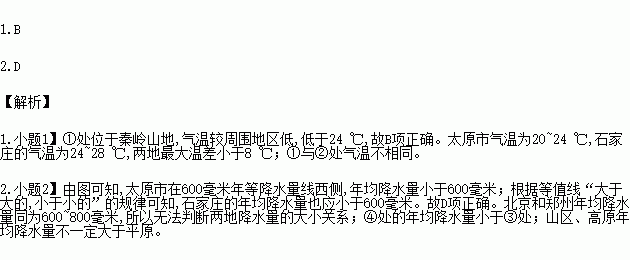 D£®Ì«Ô¡¢Ê¯¼ÒׯÄê¾ù½µË®Á¿¾ùСÓÚ600ºÁÃ×
