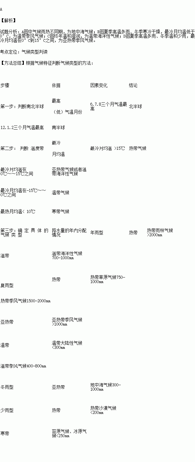 A.地中海气候、温带季风气候、温带海洋性气候、亚热带季风气候