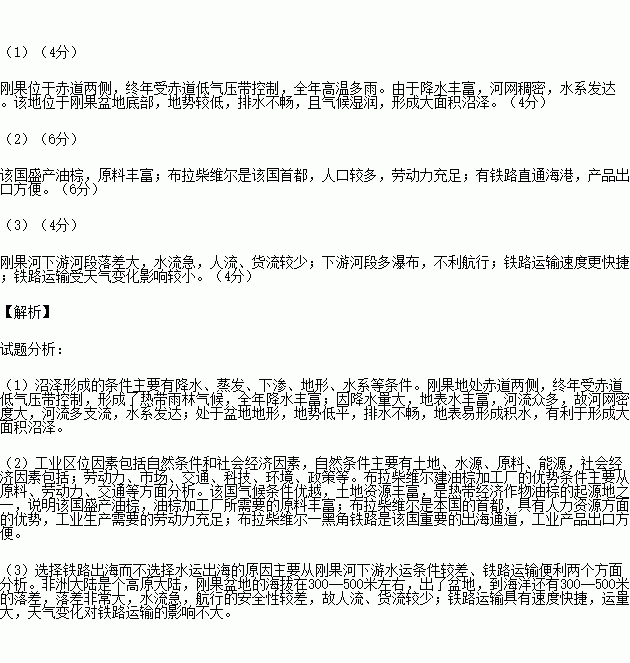 (1)分析刚果盆地沼泽广布的原因。