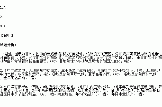 3.ͼÖÐM¡¢N¾ùÊôÓÚÈÈ´øÓêÁÖÆø´ø¡£µ«Á½µØÆøºòÌØÕ÷²îÒìÏÔÖø¡£¸ù¾ÝͼÖÐÌṩÐÅÏ¢·ÖÎö£¬Ïà¶ÔÓÚMµØ£¬NµØ×îÏÔÖøµÄÌØÕ÷ÊÇ