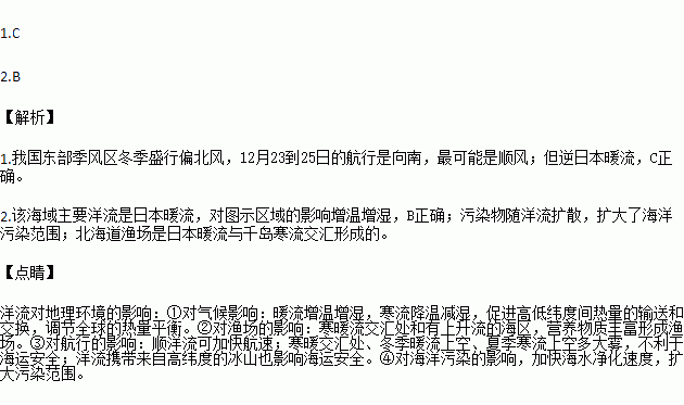 1.辽宁舰编队在2016年12月23N25日的航行过程中,最可能 ( )