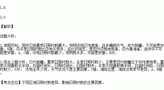 2.影响①省(区)日照时数逐月变化的主要因素是