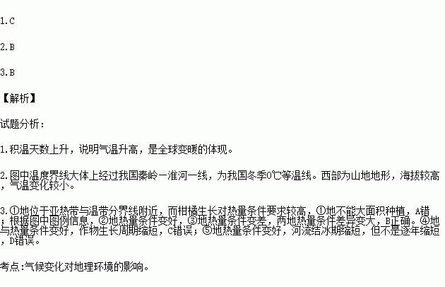 3.根据温度及温度带界线变化,下列判断正确的是