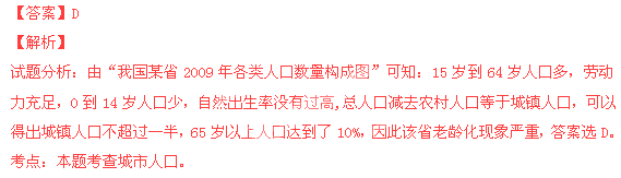 图7表示“我国某省2009年各类人口数量构成图”。关于该省人口的叙述,正确的是( )