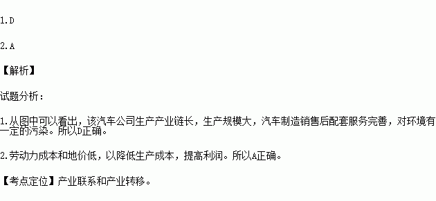 读美国某汽车公司生产一服务过程示意图,完成下列问题。