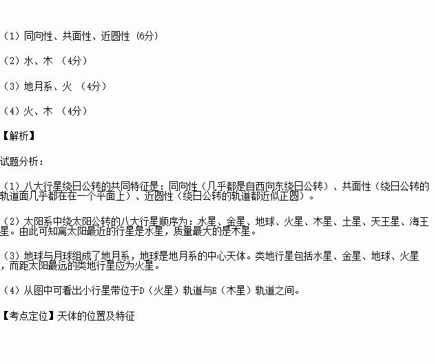 (3)以地球为中心天体的天体系统是 ;类地行星中,距离太阳最远的是 。