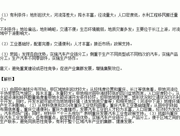 (2)某汽车制造企业拟在重庆建设生产基地,说出其有利条件。