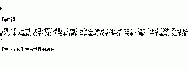 D.①多佛尔海峡 ②霍尔木兹海峡 ③白令海峡 ④马六甲海峡