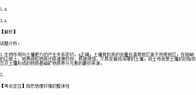 土壤是反映地理环境整体性的一面“镜子”,不同土壤可以反映出不同的气候,地表物质、地形、水文条件、生物及人类活动情况。据此回答下列问题。